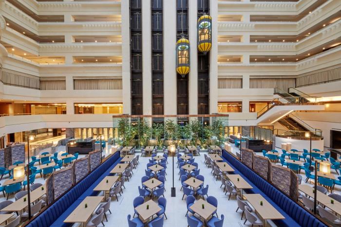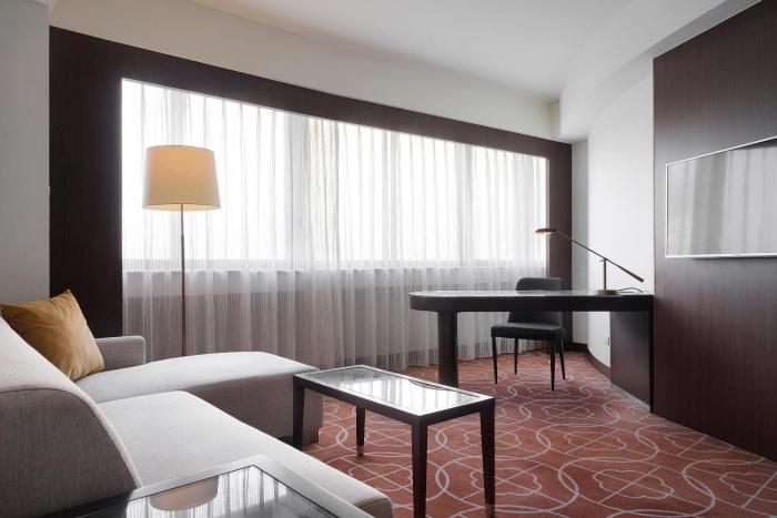 The hotel has 730 non-smoking rooms and includes an elevator and a reception desk. Services and facilities include a safe, an ATM, translation services, room service, a conference room and a business center. Wireless internet access is provided in public areas. The hotel has wheelchair-accessible facilities. Souvenirs can be purchased at the gift shop. Guests arriving by car can park their vehicles in the parking lot.