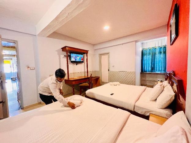 An average hotel with clean rooms. Families can stay for a day or two without much fuss. Have basic amenities like- towels, soap, hot water supply, drinking water, blankets, TV. No room service as...