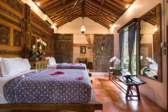 This hotel is located about a 45-minute walk from the tourist hotspots, and it is 10 minutes by car to the center Sanur. Its setting is especially ideal for parents with children. The nearest airport is Bali Denpasar - Ngurah Rai (DPS), 10 miles.