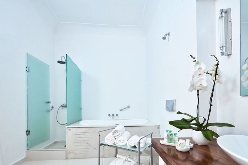 Rooms are equipped with air conditioning and central heating. Guests can relax and enjoy the sea view on the balcony or private terrace of some rooms. Rooms include a queen-size bed. Separate bedrooms can be reserved. Extra beds can be requested. A safe, a minibar and a desk are also available. A mini fridge and a tea/coffee station are standard features. A telephone, a TV and WiFi ensure optimal comfort. Amenities provided in the rooms include slippers and a daily paper. Bathrooms are equipped with a shower, a bathtub and a whirlpool bath. A hairdryer and bathrobes are available for daily use.