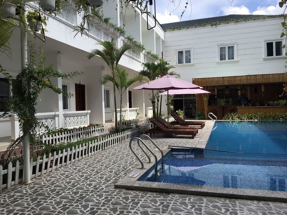 Guests can enjoy a refreshing swim in the outdoor pool area.