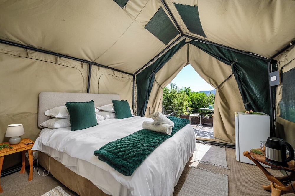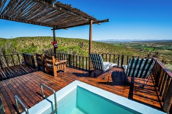 Situated on top of a hill looking over the Outeniqua and the Swartberg mountains, Le Petit Karoo Ranch offers luxury tents and rooms in a tranquil setting. Free Wi-Fi is available throughout.