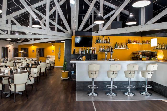 The dining area includes a restaurant and a bar.
