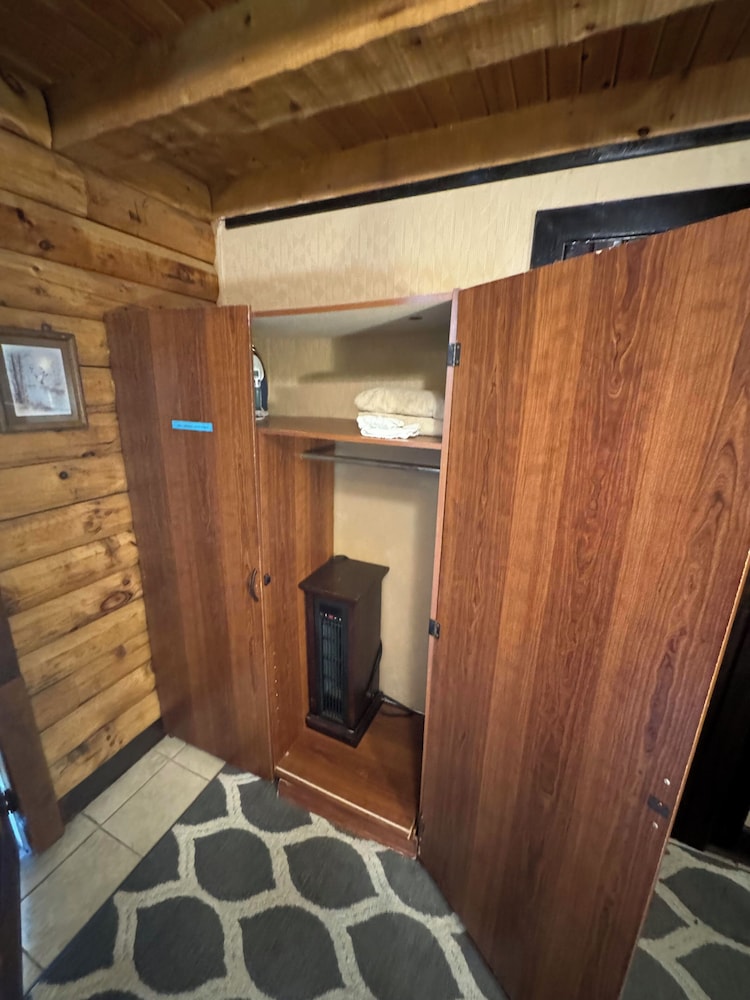 log cabin in the field