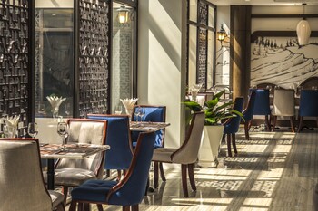 The dining area includes a restaurant and a café.