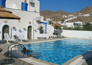 This hotel is situated in Ios (town), right on the sandy beach. Guests can reach the center after about 1 mile.