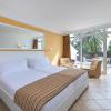 Air conditioning and central heating ensure that rooms maintain comfortable temperatures. Guests can enjoy the sea view from a balcony or terrace. Rooms include a double bed. Separate bedrooms can be reserved. Children's beds and extra beds can be requested for younger guests. A safe and a minibar are also available. There is a fully-equipped kitchenette with a refrigerator, mini fridge, cooktop, microwave and tea/coffee station. A telephone, satellite television, a radio and WiFi (no extra charge) provide all the essentials for a comfortable vacation. A hairdryer and a vanity mirror are provided in the bathrooms, which include a shower and a bathtub. Family rooms are available for parents with children.