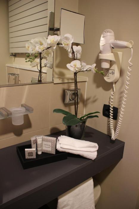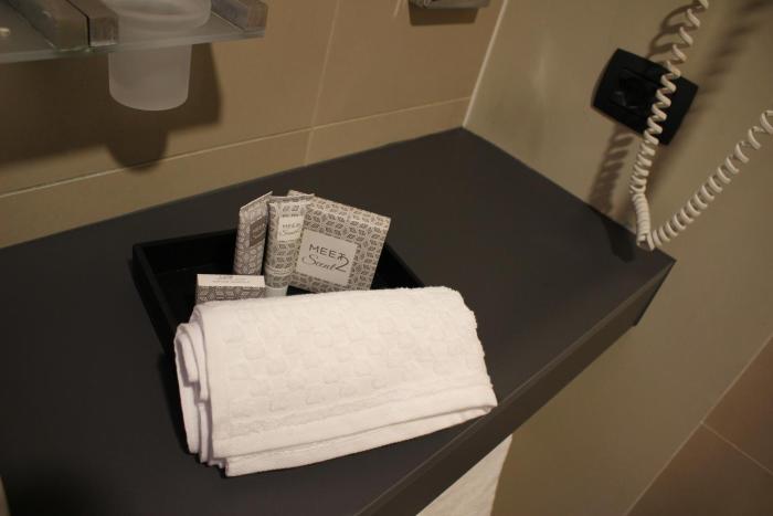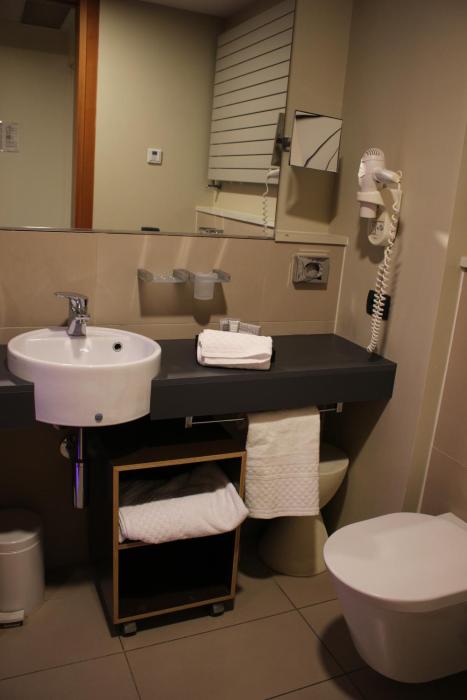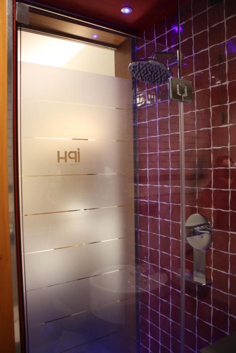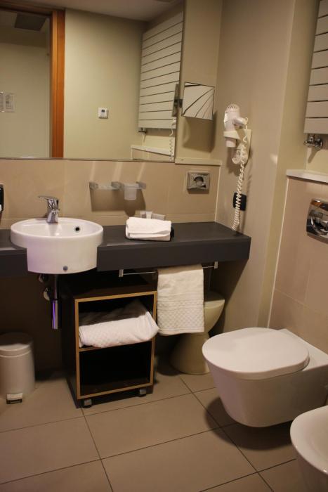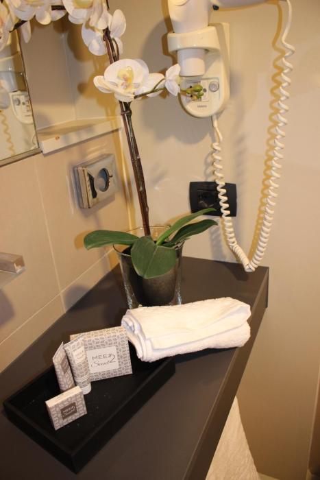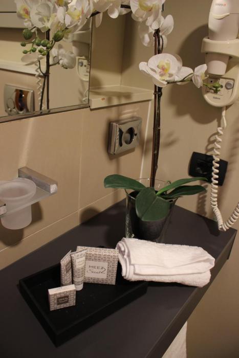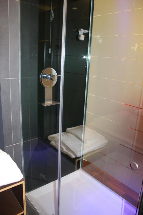 Positive: very big and modern rooms, very cool shower with view on...the bedroom ?? (but you can also close it), very clean bathroom with special light effect, Italian breakfast with fresh coffee...