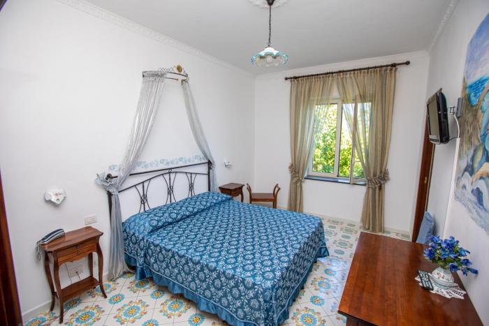 We two had a small double room called Apollo. 2 twin mattresses pushed together. Room was very small but led out to a nice large deck with views to the Capo di Conca and the sea beyond. Also views...