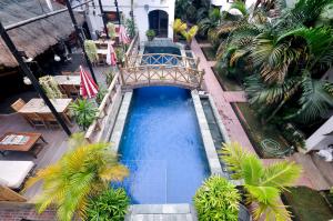 Guests can enjoy a refreshing swim in the outdoor pool area. The pool bar serves a selection of refreshing drinks.