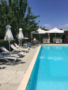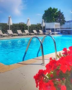 Guests can enjoy a refreshing swim in the outdoor pool area. A variety of refreshing drinks await guests at the pool bar.