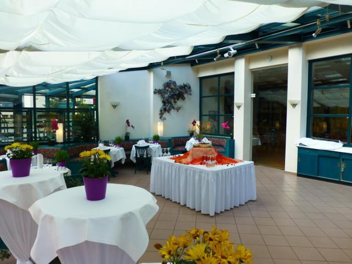 Beautiful bright restaurant area with nice views over the city, food was great, super nice staff, Mr. Albrecht, the manager went out of his way to accommodate our last minute requests to have flowers...