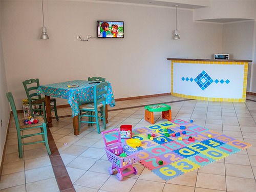 The hotel has 70 rooms and includes an elevator and a reception desk. Services include a baggage storage service. Wireless internet access in public areas allows guests to stay connected. Additional amenities include a TV room and a playroom. Guests arriving by car can park their vehicles in the parking lot. Further services and facilities include a babysitting service, a childcare service, a transfer service, room service and a laundry service. A bicycle rental service gives guests the opportunity to explore the surrounding area independently.