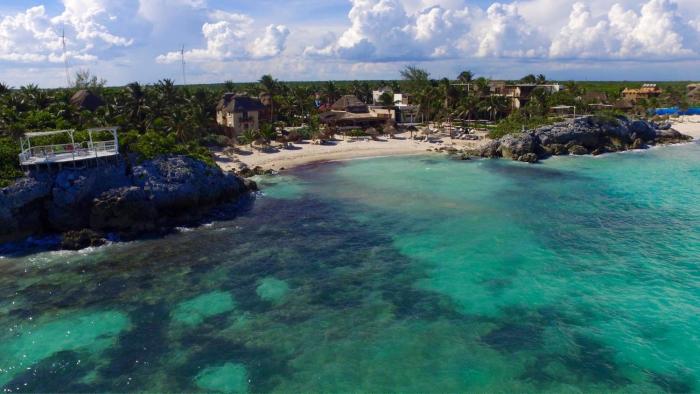 This hotel is located in Tulum, right on the beach.