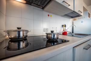 Air conditioning, central heating and a fan ensure that rooms maintain comfortable temperatures. A balcony is included as a standard feature in some rooms. The rooms have a double bed and a sofa bed. Separate bedrooms can be reserved. Children's beds and extra beds can be requested for younger guests. The kitchenette comes with a refrigerator, a cooktop and a microwave. A telephone, satellite television and WiFi provide all the essentials for a comfortable vacation. Bathrooms are equipped with a shower and a hairdryer. Family rooms are available for parents with children.