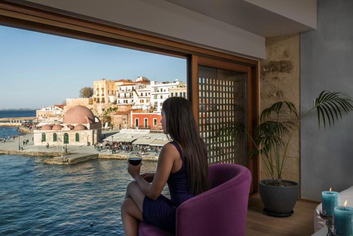 This hotel welcomes guests in Chania.