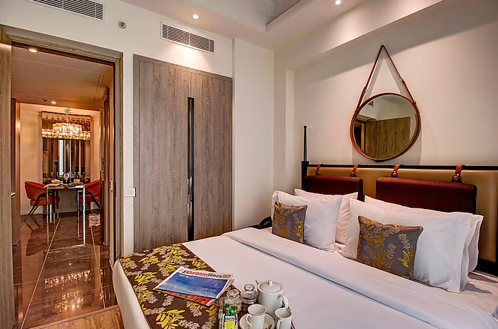 Rhythm Gurugram: Experience one of the Best Hotels on Sohna Road right next to the Highway. The property is located just 24 km from the IGI Airport in New Delhi. We have 121 elegantly appointed Suites and luxurious amenities. Enjoy Rooftop Dining and a Swimming Pool along with panoramic views of the city. The property features a multi-cuisine restaurant, gymnasium, travel concierge and a host of banqueting services. We have venues and facilities for all types of corporate events & celebrations. Our purpose is to provide warmth in our services, that is the hallmark of Indian hospitality.