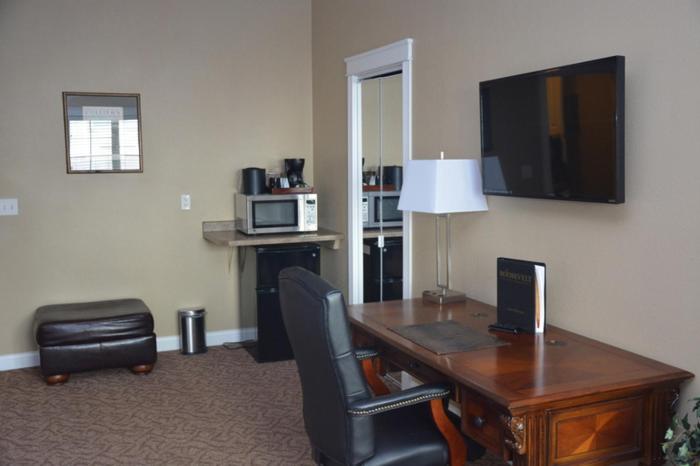 The hotel provides a conference room and a business center. Wireless internet access is provided in public areas. A fireplace creates a cozy atmosphere. Guests arriving by car can park their vehicles in the parking lot.