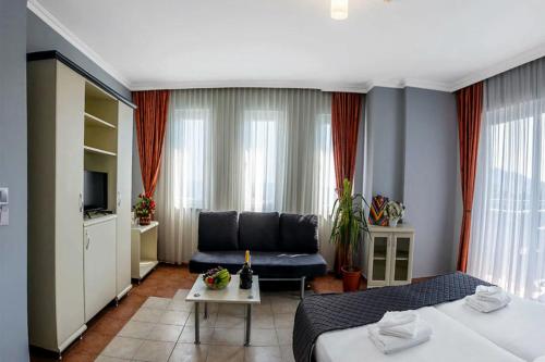 This family-friendly hotel lies a few yards away from the sandy beach, in a lively area right in Alanya. From here, it is very easy for beach vacationers and families to embark on an exploratory tour and get to know the area a bit better. The nearest airport is Gazipasa (GZP), located about 25 miles away. Antalya (AYT) Airport is approximately 80 miles away.