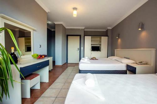 The dining area includes a bar. Warm hospitality and a cozy atmosphere await guests in 2 non-smoking restaurants. Refreshing drinks at the beach bar are a perfect way to enjoy warm weather. All-inclusive can be booked. A generous and varied breakfast buffet (also for early birds and late risers) provides many delicious reasons to rise and shine. At lunch and dinner, guests serve themselves at the buffet. The hotel also offers snacks. For guests, alcoholic and non-alcoholic drinks are included.