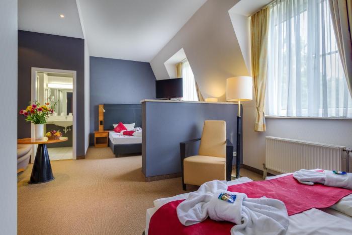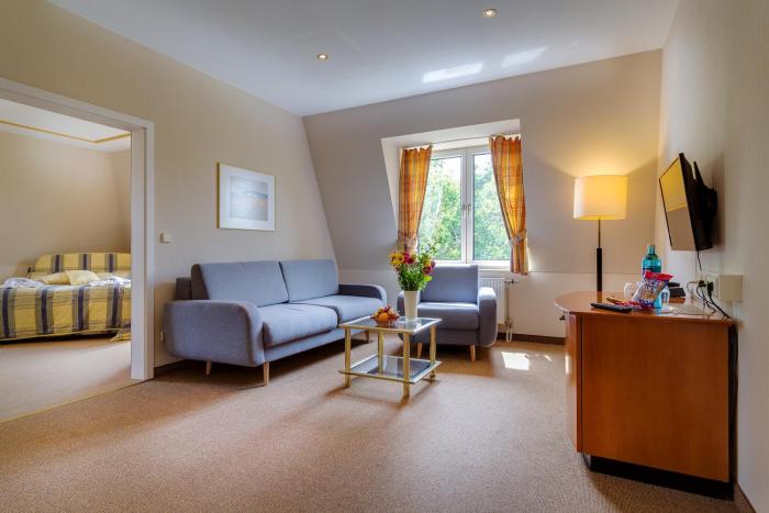 The hotel has an elevator and features 72 rooms. The friendly staff at the reception desk in the lobby are happy to answer any questions. Services and facilities include room service and a conference room. Internet access in public areas allows guests to stay in touch while on vacation. A fireplace creates a cozy atmosphere. The grounds of the hotel feature a playground and a lovely garden. Parking spaces are available to guests traveling by car. A bicycle rental service (for a fee) gives guests the opportunity to explore the surrounding area independently.