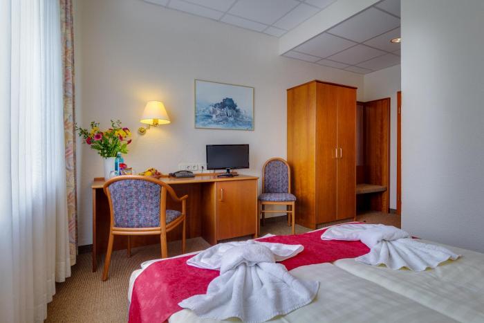 Fine weather can be enjoyed on the terrace. Recreational activities and facilities at the hotel include paddle boating, table tennis, a spa, a sauna and massage treatments or, for a fee, cycling/mountain biking.