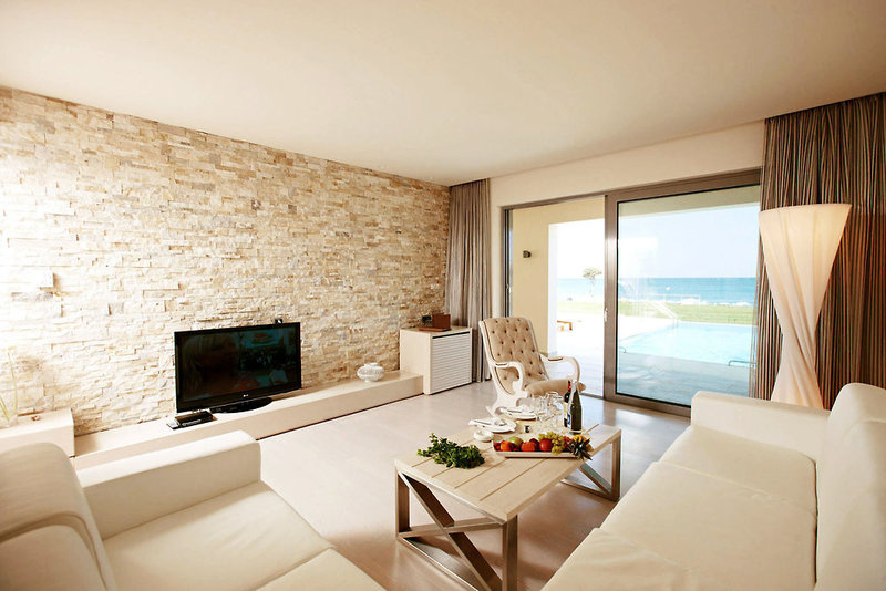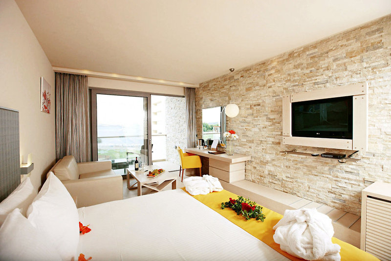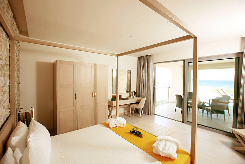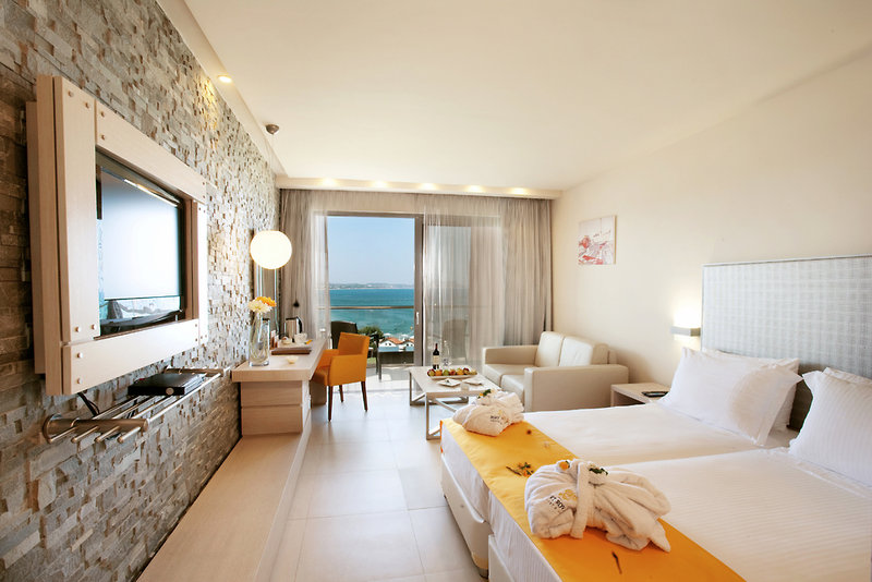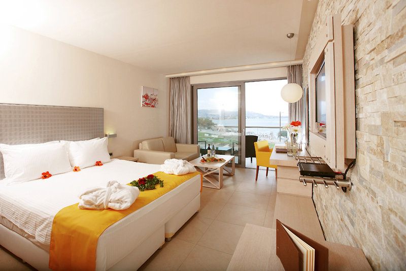 Rooms are equipped with air conditioning and central heating. Guests have a sea view from the balcony or terrace, which are standard features of some rooms. Rooms have a double bed or a king-size bed. Separate bedrooms can be reserved. A safe and a minibar are also available. Additional features include a mini fridge and a tea/coffee station. A direct dial telephone, a television with satellite/cable channels and WiFi are provided as well. A hairdryer and bathrobes are available in the bathrooms, which are equipped with a shower and a bathtub. Some of the wheelchair-friendly rooms have a wheelchair-accessible bathroom.
