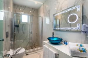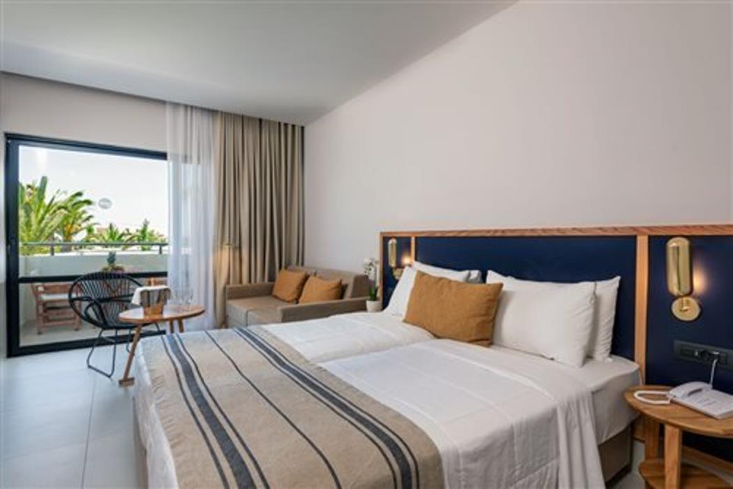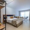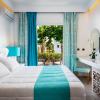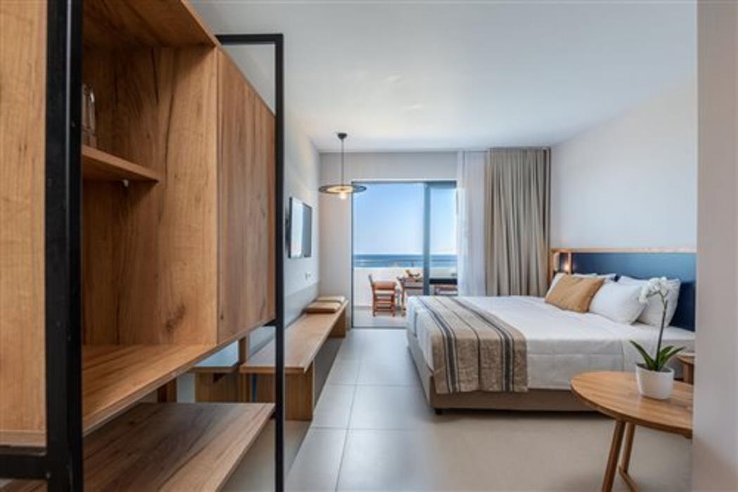 Air conditioning ensures that rooms maintain comfortable temperatures. Guests can enjoy the sea view from a balcony or terrace. The rooms have a double bed and a sofa bed. Separate bedrooms can be reserved. Children's beds and extra beds can be requested for younger guests. A safe and a minibar are also available. A kitchenette with a refrigerator and a mini fridge is also provided as a standard feature. A direct dial telephone, a television with satellite/cable channels, a radio and WiFi (no extra charge) provide all the essentials for a comfortable vacation. Bathrooms are equipped with a shower and a bathtub, as well as a hairdryer. The hotel has family rooms and non-smoking rooms.