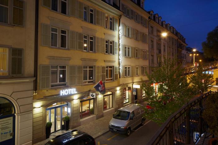 32 single rooms and 26 double rooms are located on 5 stories and can be reached by elevator. Check-in and check-out are possible at any time at the 24-hour reception desk. Services and facilities include a safe, a currency exchange service, a newspaper stand, a laundry service and a conference room. Wireless internet access is provided in public areas. Guests arriving by car can park their vehicles in the garage (for a fee) or in the parking lot.