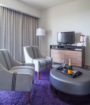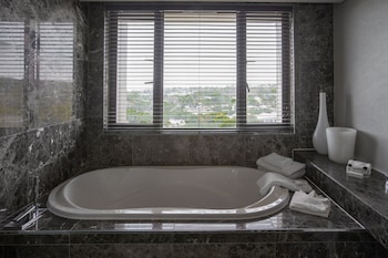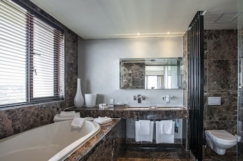 Make yourself at home in one of the 132 air-conditioned rooms featuring minibars and DVD players. Complimentary wireless Internet access keeps you connected, and satellite programming is available for your entertainment. Private bathrooms with separate bathtubs and showers feature rainfall showerheads and designer toiletries. Conveniences include phones, as well as laptop-compatible safes and desks.