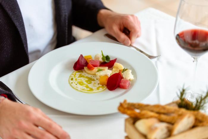 The dining area includes a restaurant and a bar. Half board can be booked. Breakfast and dinner offer culinary delights every day.