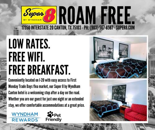 When you stay at Super 8 by Wyndham Canton in Canton, you'll be within a 10-minute drive of Splash Kingdom Family Waterpark and Old Mill Marketplace. This motel is 4.9 mi (7.8 km) from First Monday Trade Days and 12.2 mi (19.6 km) from Salt Palace Museum.