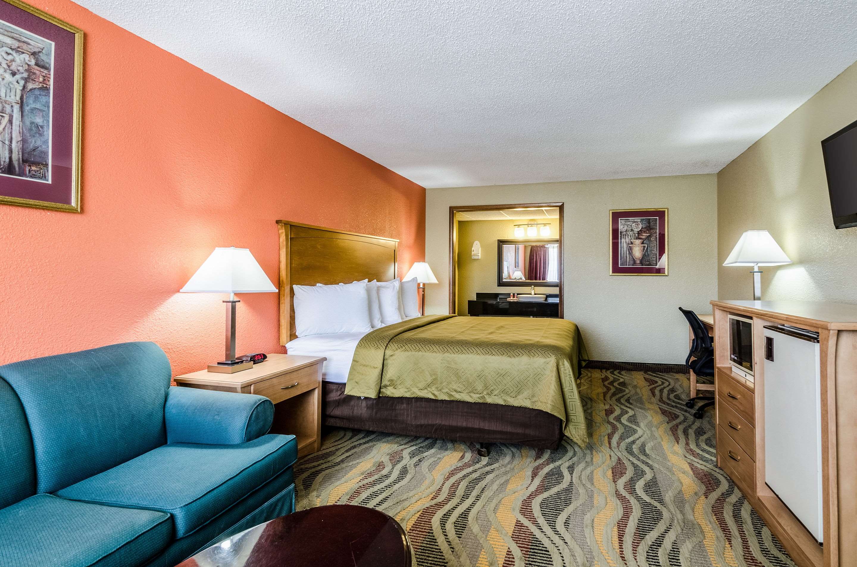 Make yourself at home in one of the 108 air-conditioned rooms featuring flat-screen televisions. Complimentary wireless Internet access keeps you connected, and satellite programming is available for your entertainment. Bathrooms have shower/tub combinations and hair dryers. Conveniences include desks and coffee/tea makers, as well as phones with free local calls.