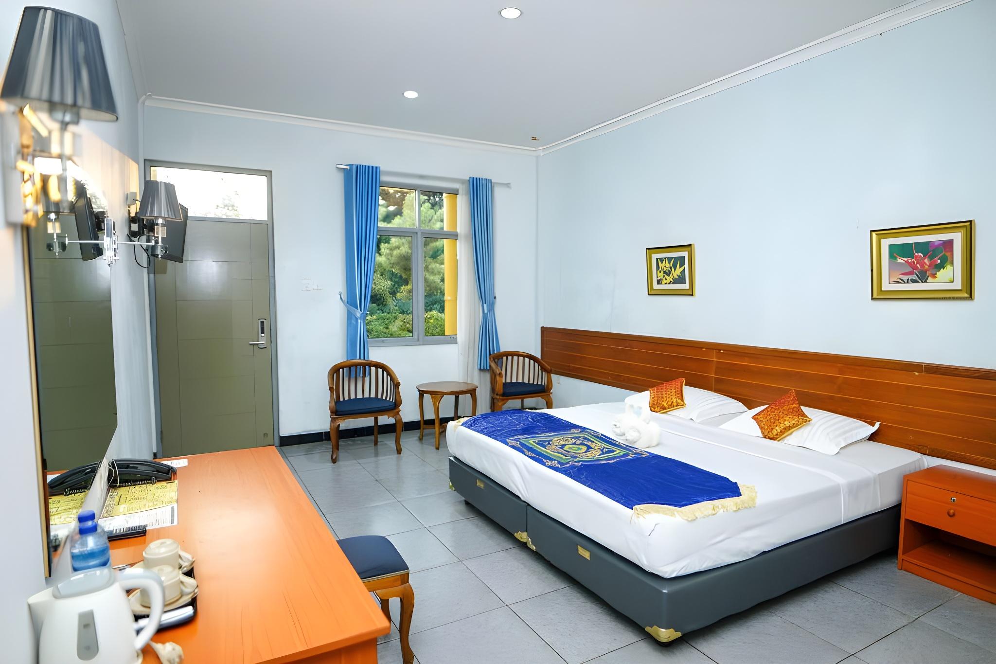 though the rooms are already old fashioned but this hotel still ok to stay the location is almost at heart of sukabumi the breakfast is also various and the scenery of the park is green the staff...