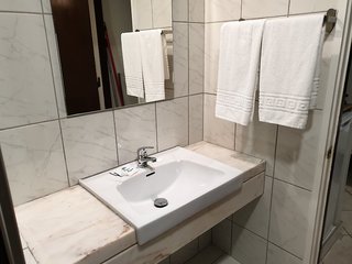 Valuables can be securely stored in a safe for an additional charge. The kitchenette comes with a microwave. There is a telephone, a TV and WiFi (for a fee) in the rooms. The bathrooms have a shower and a bathtub.