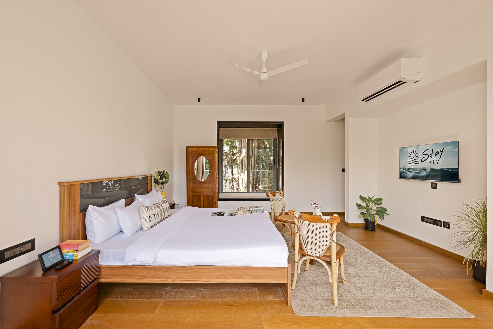 The Banyan Tree Villa B1 By Stay ALYF, Siolim Is Located In Siolim, Just 4.4 Miles From Chapora Fort And 9 Miles From Thivim Railway Station. This Villa Features Free Private Parking, Free Shuttle Service, And Free Wifi. The Accommodation Provides Airport Transfers, While A Bicycle Rental Service Is Also Available. The Air-Conditioned Villa Consists Of 4 Bedrooms, A Living Room, A Fully Equipped Kitchen With An Oven And A Kettle, And 5 Bathrooms With A Walk-In Shower And Free Toiletries. Guests Can Take In The Views Of The Pool From The Balcony, Which Also Has Outdoor Furniture. The Villa Offers Bed Linen, Towels, And Daily Room Service. In Addition To A Year-Round Outdoor Pool, The Villa Also Offers Outdoor Play Equipment. Tiracol Fort Is 16 Miles From The Banyan Tree Villa B1 By Stay ALYF, Siolim, While Fort Aguada Is 11 Miles From The Property. The Nearest Airport Is Manohar Parrikar International Airport, 13 Miles From The Accommodation.
