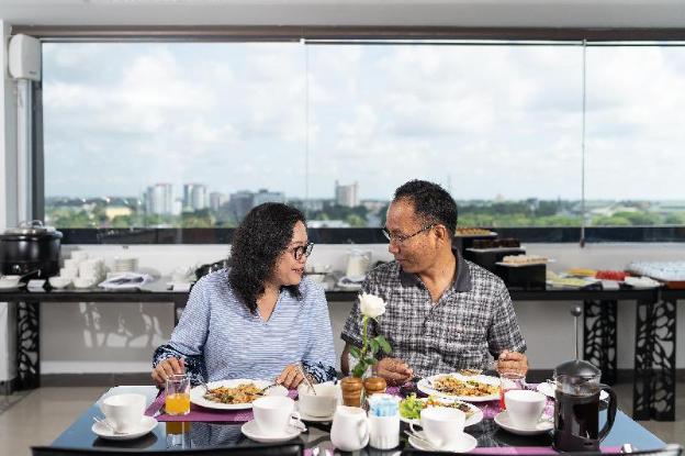 The dining area includes a restaurant and a café. A delicious breakfast provides energy for the rest of the day.