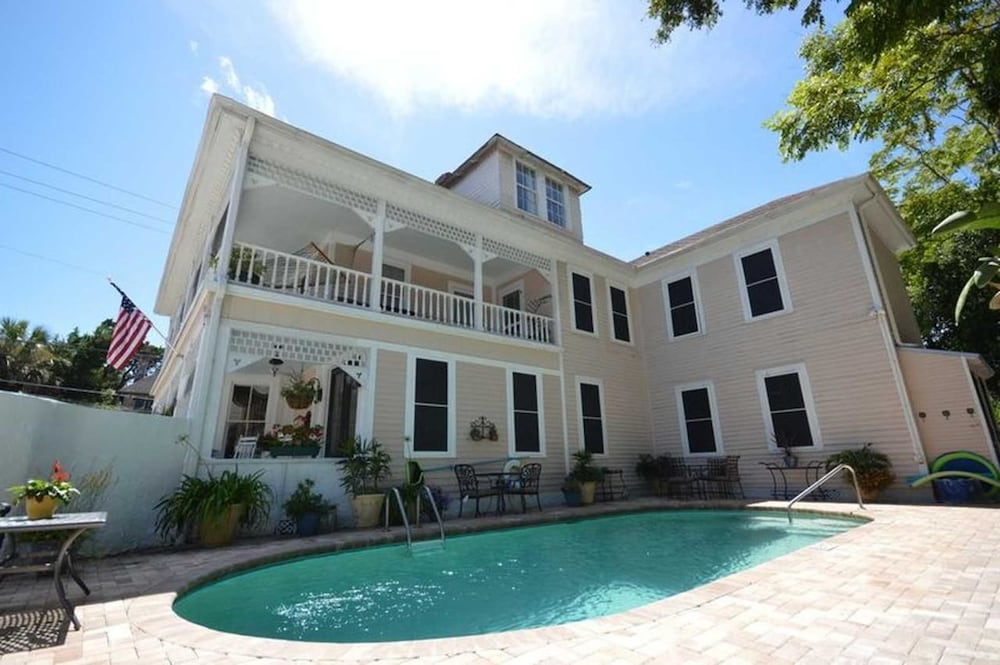 Guests can enjoy a refreshing swim in the outdoor pool area.