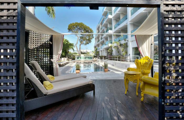 This boutique hotel is located in Christchurch, right on the beach.