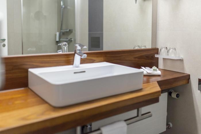 Central heating ensures that rooms maintain comfortable temperatures. In some rooms, a terrace is included as a standard feature. Children's beds and extra beds can be requested for younger guests. A desk and, for a fee, a minibar are also available. Extra comforts include a mini fridge. Other features include a telephone, a TV, a radio and WiFi. Guests will also find slippers in their rooms. A hairdryer and bathrobes are available in the bathrooms, which are equipped with a shower and a bathtub. The hotel has family rooms, 155 non-smoking rooms and 1 smoking room.