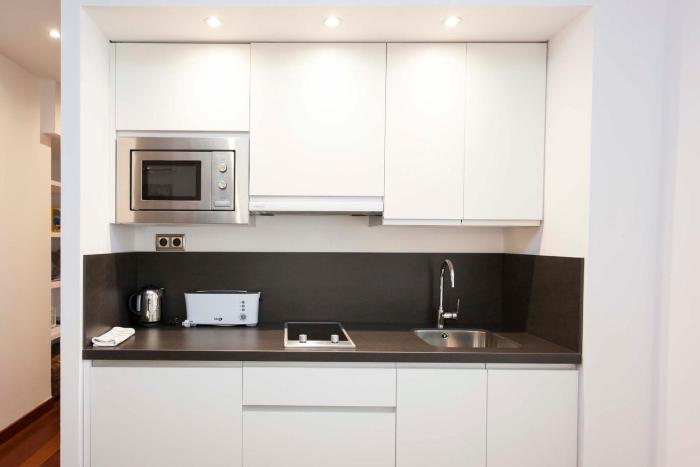 A balcony with mountain view, a cable flat-screen TV and air conditioning are featured in some units.