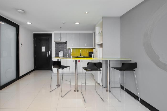 The hotel have complete amenities provided and refills it everyday. The room is big enough to move around and store your language. Clean room, kitchen and bathroom. Their kitchen have a complete set...
